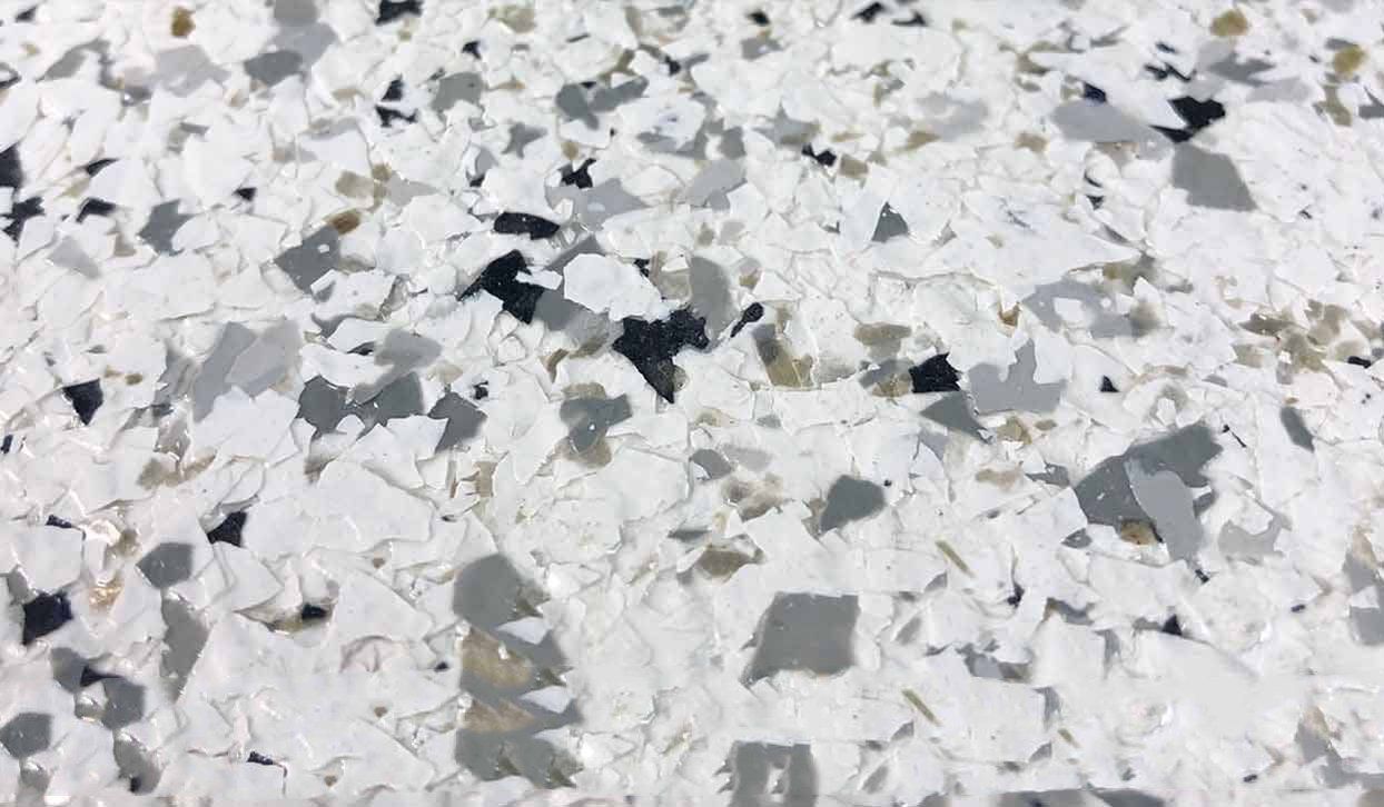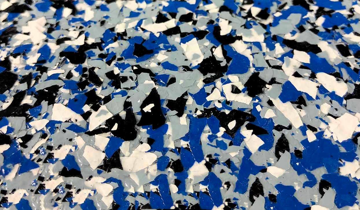 High-Solids, Low-Odor Coating suitable for all garage floors and is applied with a high pigment loading designed for color chip flooring. It can be finished with no color chips or with light broadcasting of color chips. This tough topcoat provides a hard and impact-resistant finish. It can be applied with either normal-curing Urethane Epoxy or fast-curing Polyaspartic.However, the final finish of epoxy is seamless and has a shine to it that really increases the high-end look of a room.